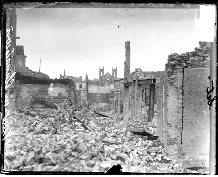 Disaster zone: San Francisco’s Chinatown, after the 1906 earthquake. Image: Chicago Daily News/Wikimedia Commons.
